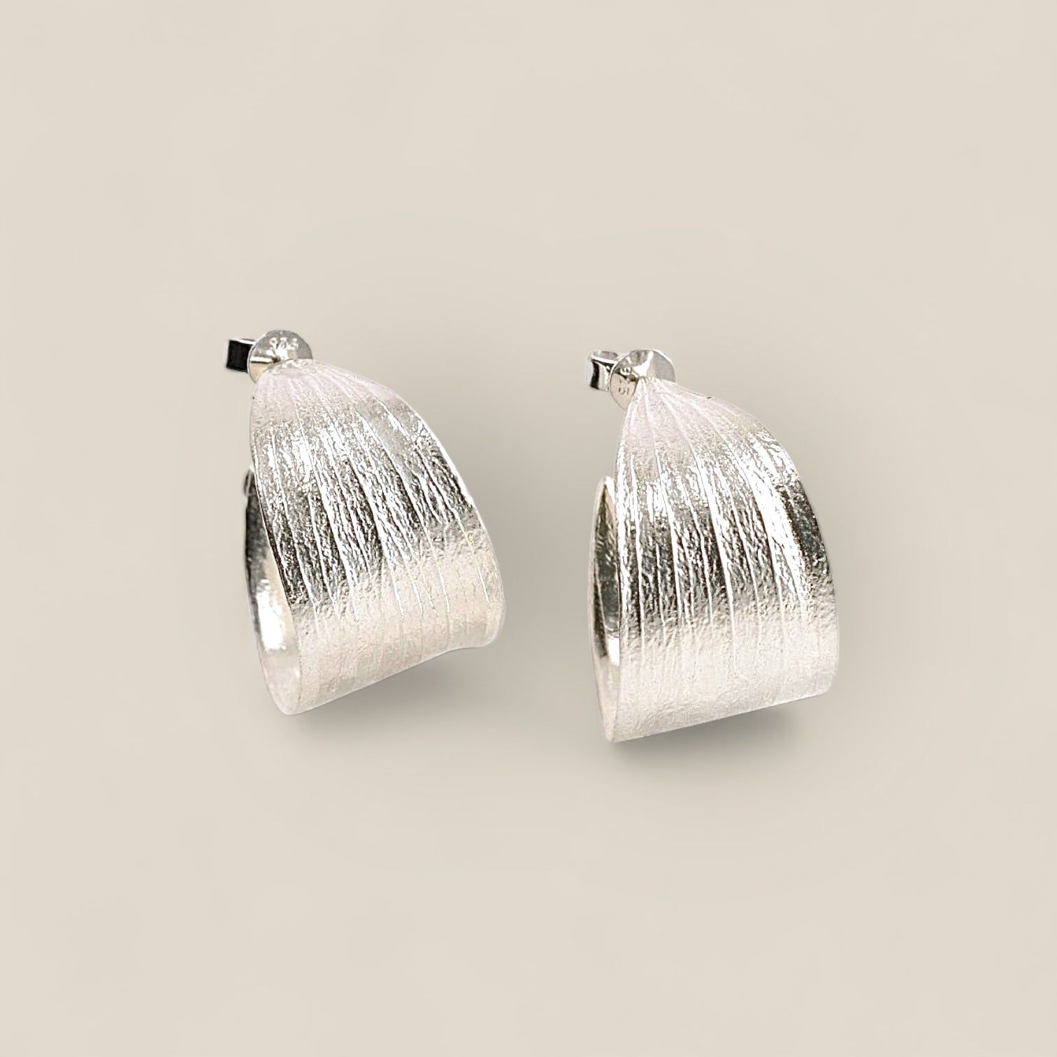 Melaleuca leaves elegantly form into a pair of contemporary sterling silver hoop earrings.