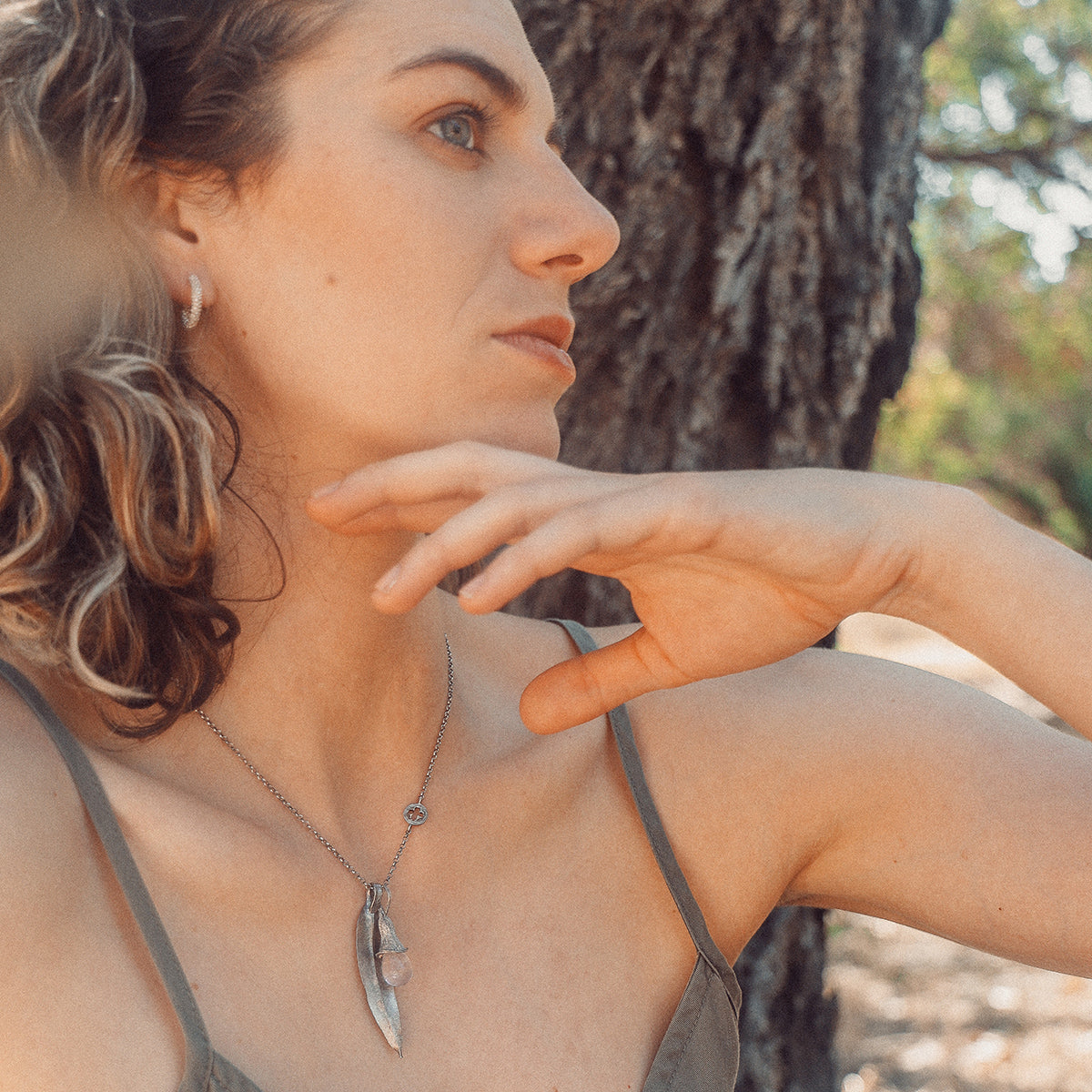 Natura Eucalyptus Silver Charm Necklace